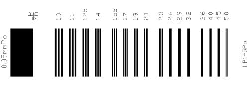 分辨率測試卡的射線吸收體材料用鉛箔或者與鉛當(dāng)量相當(dāng)?shù)慕饘俨?/p>