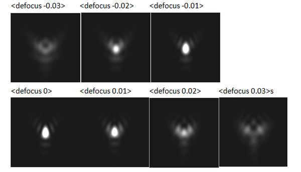 b) 從P0 - 0.03位置開始攝取點(diǎn)像并計(jì)算MTF,假定step為0.01,測(cè)到P0 + 0.03。 (如果焦深很大,則P0兩側(cè)的defocus測(cè)定范圍也要相應(yīng)的擴(kuò)大)